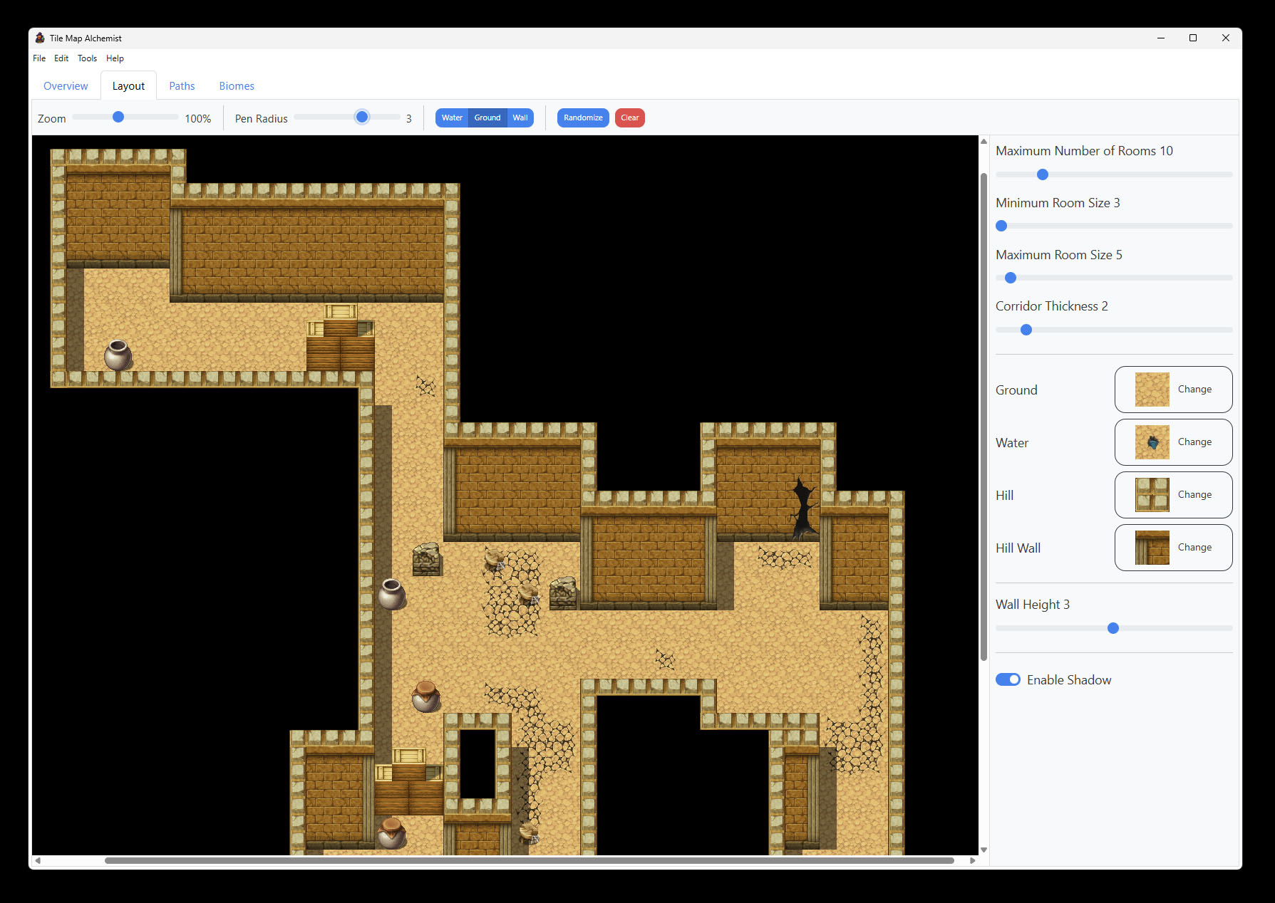 Tile Map Alchemist now supports procedural dungeon maps! You can generate labyrinths, rooms, corridors, and underground layouts with the same flexibility as outdoor maps.